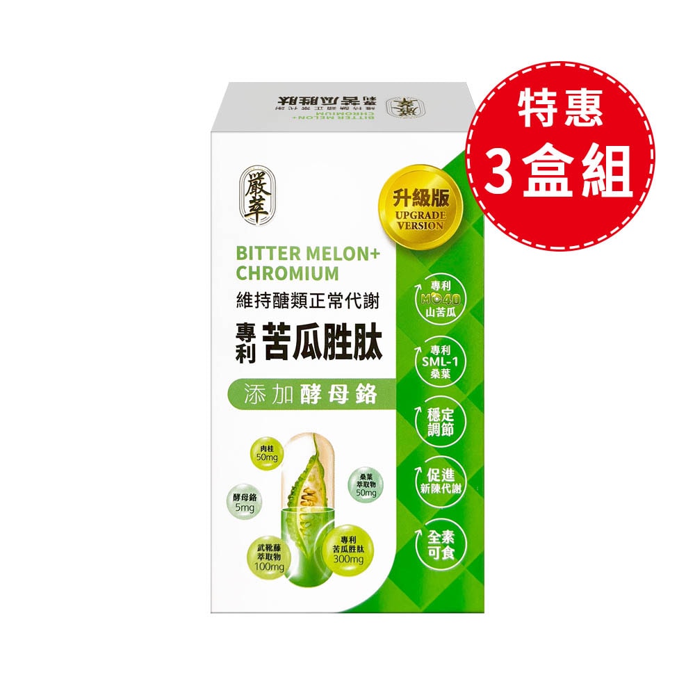 1.商品組合/規格:【嚴萃】山苦瓜胜肽x酵母鉻 (30粒/盒)x3