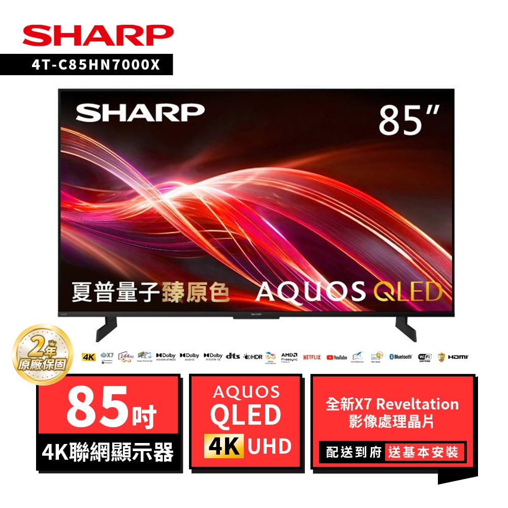 品名:SHARP 夏普 85型4T-C85HN7000X AQUOS QLED 4K UHD Google TV聯網顯示器