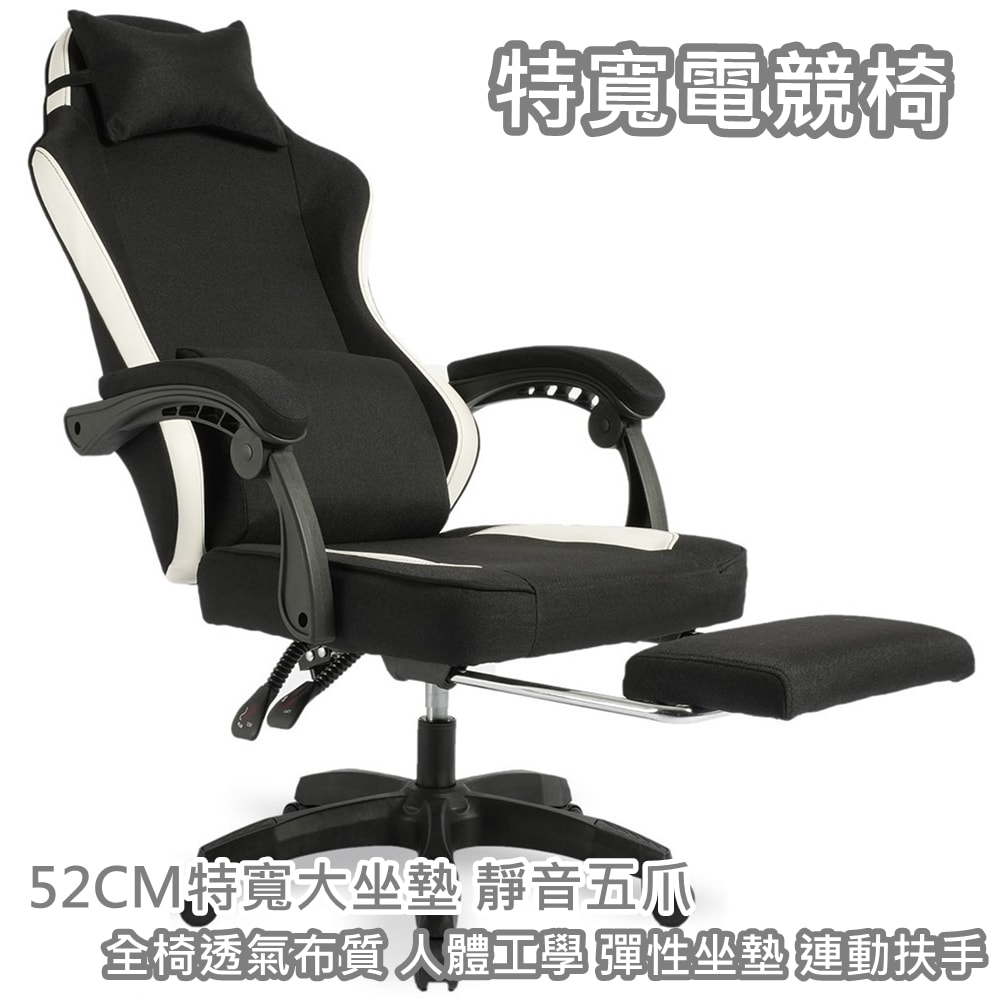無側翼特寬電競椅(坐墊寬52公分/坐寬49公分/半躺鎖定/高度可調/360度旋轉/防刮滑輪/電腦椅 辦公椅