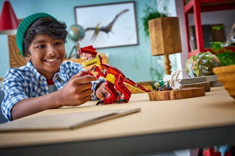男孩與女孩可選擇拼砌下顎、頭、手臂、腿和尾巴可動的迅猛龍。之後,此模型可重新拼砌成頸部、頭與腿可動的劍龍,或是翅膀、頭和腳可動的翼龍。每種模型均配有恐龍頭骨與肋骨籠、恐龍蛋和植物。遊戲時間結束後,每種模型均可當作恐龍房間飾品,讓男孩與女孩跟家人分享。