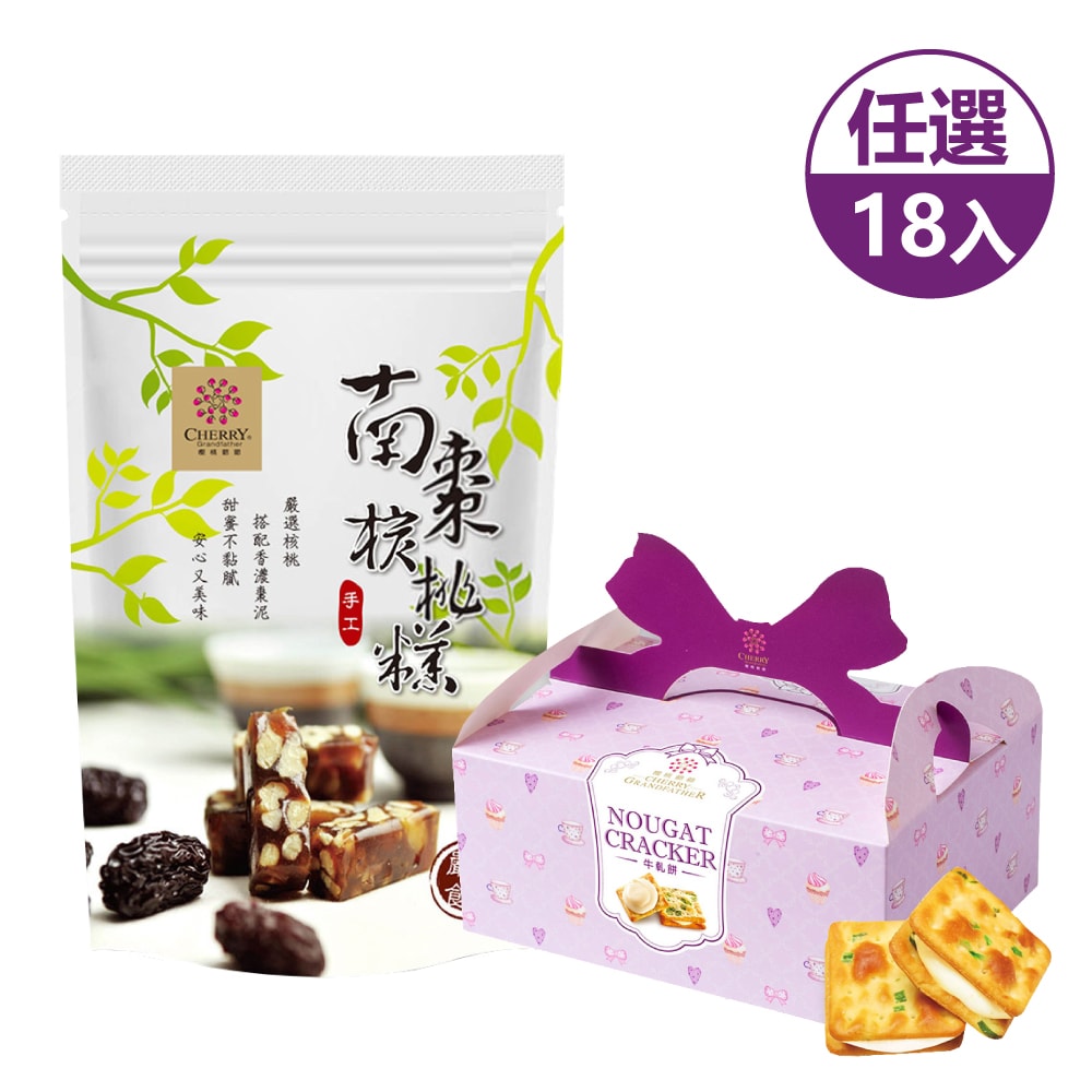 1.商品品名:蔥花牛軋餅(20入/盒)/南棗核桃糕250g;任選18組