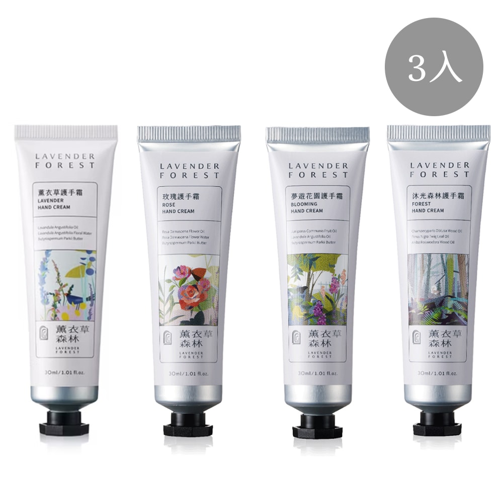 【薰衣草森林Select】 薰衣草 / 沐光森林 / 玫瑰 / 夢遊花園 護手霜 30ml x 3入 | 手部保濕霜 保濕 護手 Hand Cream