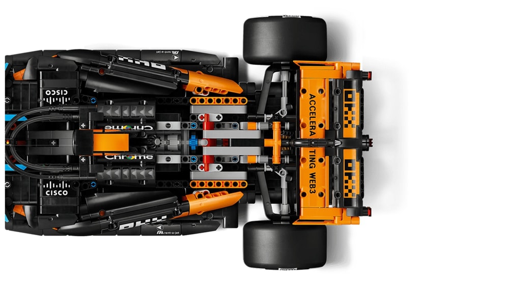 拼砌轉向系統、懸吊系統、變速箱和差速器,逐一組裝 2025 年 McLaren MCL39 F1® 賽車的細節。啟動 DRS(減阻系統),然後拆下引擎護蓋來查看 V6 引擎。將模型放在杆位,繞場慶祝勝利,接著自豪展示,向你對 F1® 的熱情致敬,