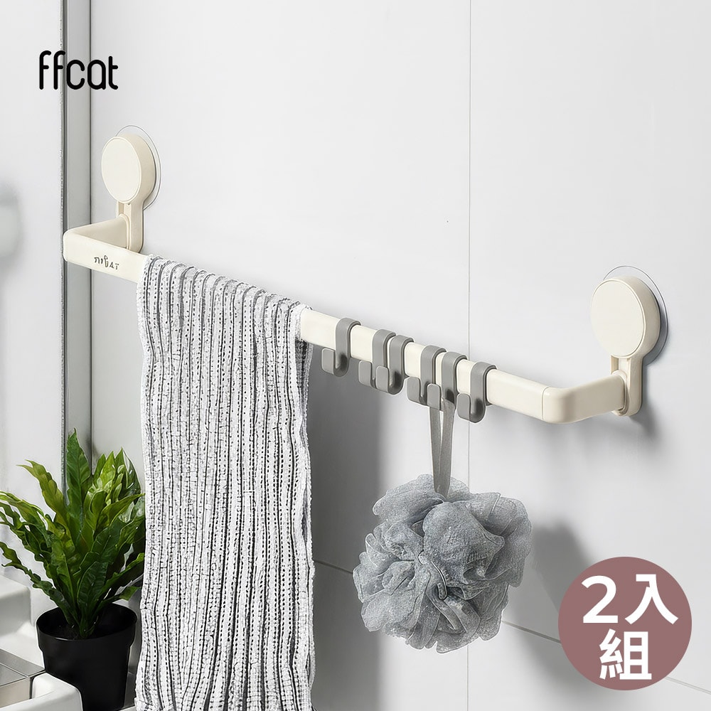 ffcat 免打孔強力無痕貼單桿長毛巾架|浴室廚房牆面收納解決方案