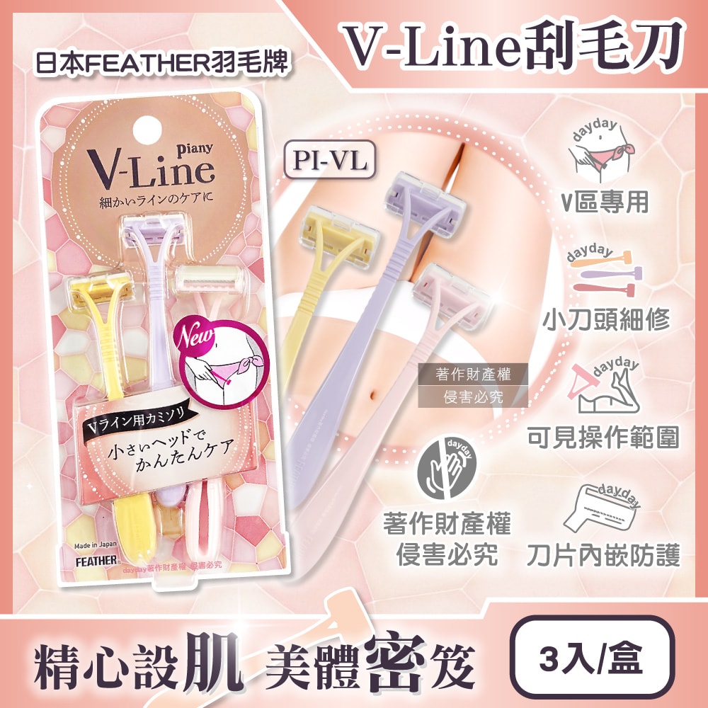 【FEATHER 羽毛牌】 Piany V-Line女用私密部位毛量調整刮毛刀3入/盒PI-VL(私密處細部修毛工具,比基尼線美容打薄剃刀,便攜手動仕女美體刀)